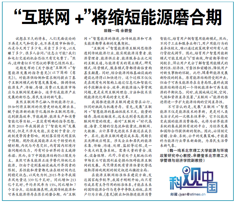The guiding opinions on promoting the “Internet +” intellectual energy development have put forward the intellectual development strategy on energy supply and demand sides, emphasizing that the traditional energy production, transmission, storage, consumption and energy market should be deeply combined with the internet to gradually form a new form of energy industry development and a new environment of residents’ life.