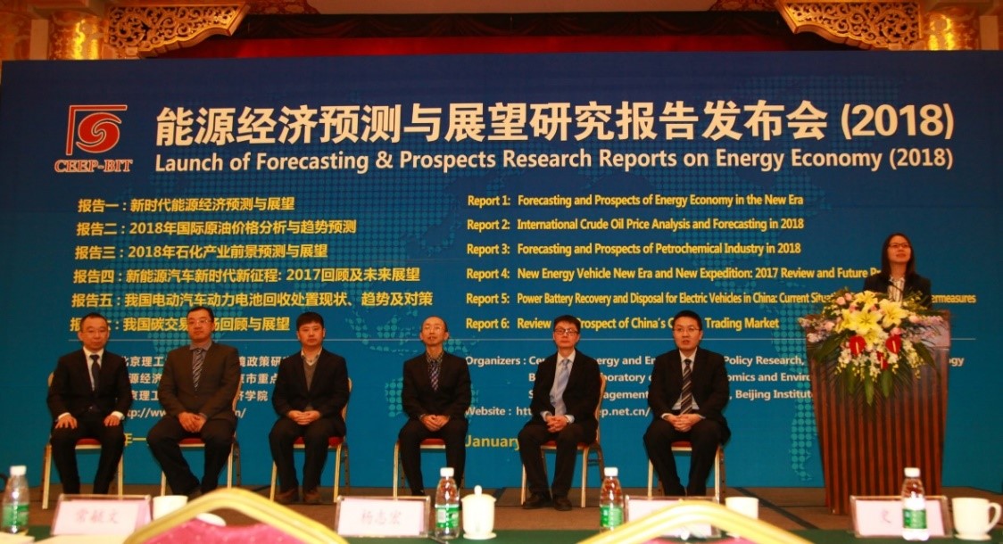 Forecasting and Prospects Research Report on Energy Economy (2018) was held successfully on Jan 13th, 2018 in Beijing by Centre for Energy & Environment Policy Research (CEEP), Beijing Institute of Technology (BIT). Six research reports were released, including “Forecasting and Prospects of Energy Economy in the New Era”, “International Crude Oil Price Analysis and Forecasting in 2018”,  “Forecasting and Prospects of Petrochemical Industry in 2018”, “New Energy Vehicle New Era and New Expedition: 2017 Review and Future Prospects”, “Power Battery Recovery and Disposal for Electric Vehicles in China: Current Status, Trends and Countermeasures” and “Review and Prospect of China's Carbon Trading Market”. Based on the domestic and international energy economy and climate policy situations, this series of reports targeted on some specific topics were written by Prof. Yi-Ming Wei’s team of CEEP. Since 2011, the CEEP team has released 8 annual reports on energy economy forecasting and prospects, arousing widespread concern and influence from all walks of life.