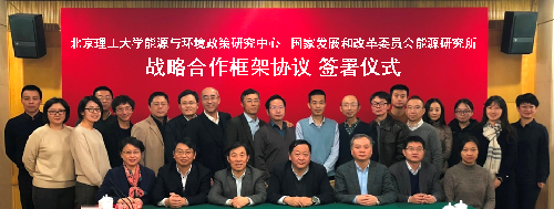 2018年1月7日,北京理工大学能源与环境政策研究中心与国家发展和改革委员会能源研究所在北京签署战略合作框架协议并组织召开智库合作项目研讨会。北京理工大学能源与环境政策研究中心主任魏一鸣教授、国家发展改革委能源研究所主持工作的副所长王仲颖研究员,分别代表双方共同签署了协议。国家发展改革委能源研究所前所长戴彦德研究员主持了合作协议的签署仪式和智库合作项目研讨会。